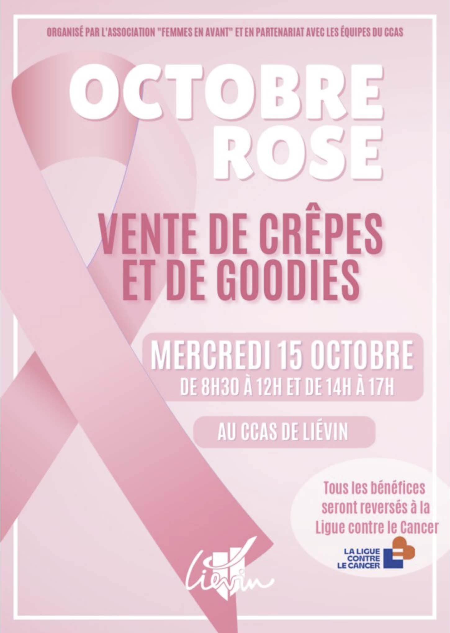 Le 15 octobre, la ville et le CCAS de Liévin organisent un événement de vente de crêpes et de goodies au profit de la ligue contre le cancer du Pas-de-Calais.